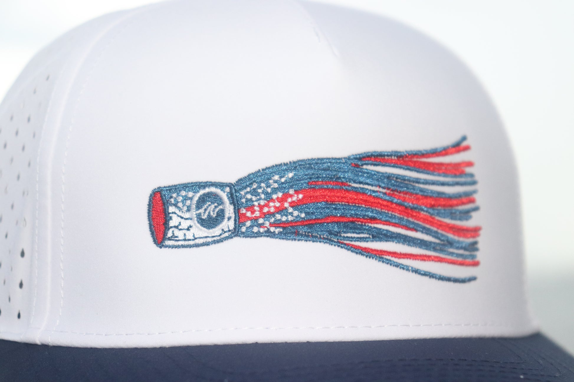 Built for bluewater warriors and patriotic anglers, The Freedom Lure hat is Tide Wear’s tribute to offshore grit and American pride. Featuring a bold, embroidered red, white, and blue trolling lure, this performance cap is ready for long runs, deep drops, and post-trip cold ones at the dock.